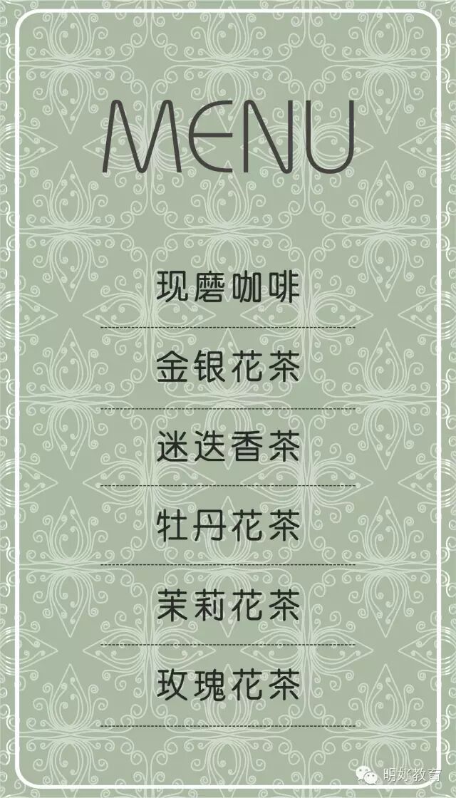 现磨咖啡、金银花茶、迷迭香茶、牡丹花茶、茉莉花茶、玫瑰花茶六款饮品任选其一!